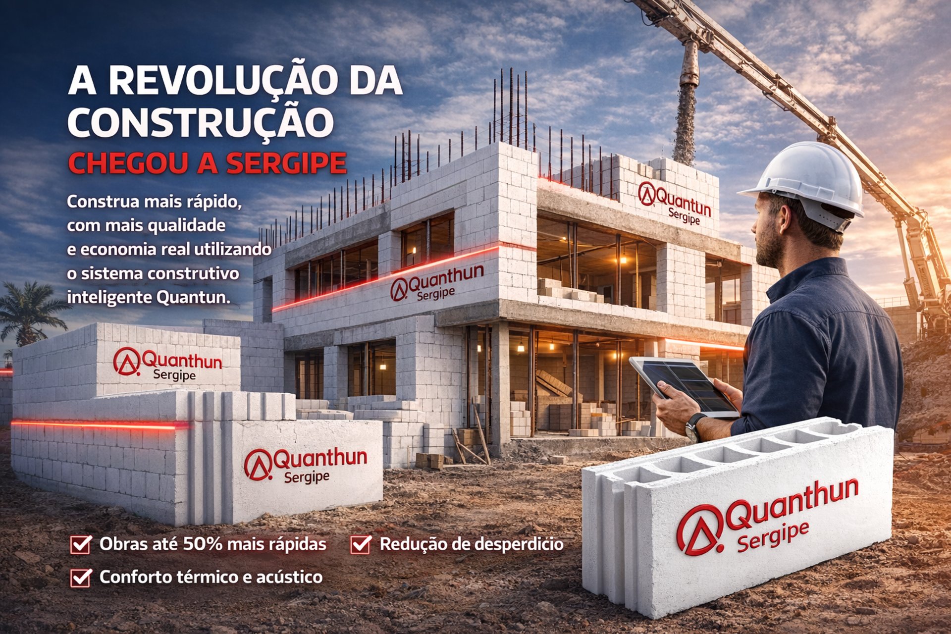 A Quanthun Sergipe é uma fábrica licenciada do Grupo Quanthun, um ecossistema completo de empresas focado em inovar a construção civil no Brasil. Utilizamos materiais ICF Quanthun que promove agilidade, segurança e qualidade.